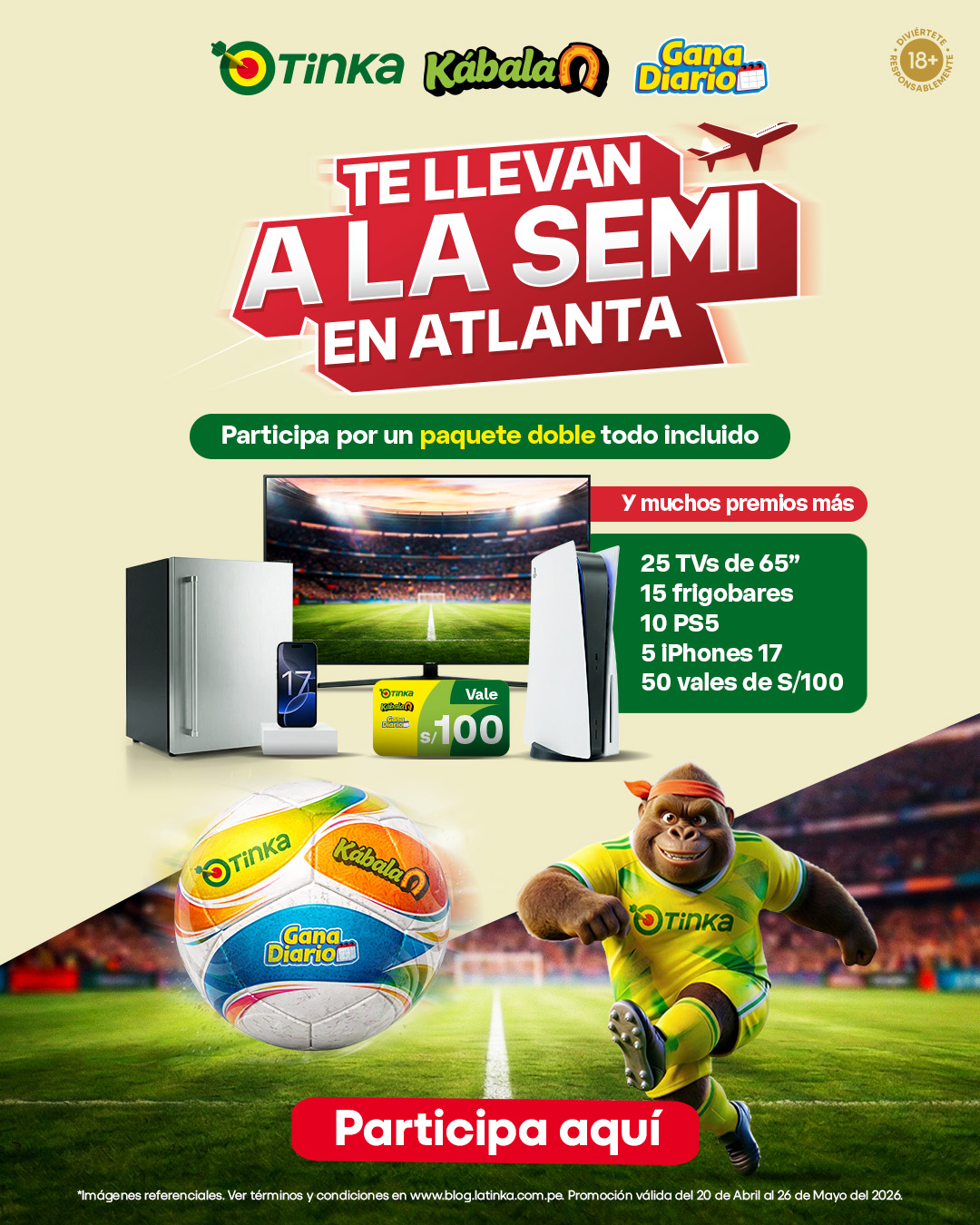 TÉRMINOS Y CONDICIONES DEL SORTEO “LA TINKA TE LLEVA A ATLANTA” 1. ORGANIZADOR El presente sorteo es organizado por LA …
