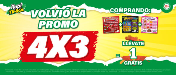 La presente promoción denominada “4×3 RAPITINKA JULIO 2025” es organizada por La Tinka S.A., identificada con RUC N° 20506035121 y domicilio legal en Av. José Pardo N° 434, Int. 1101, distrito de Miraflores, provincia y departamento de Lima (en adelante, “LA TINKA”).