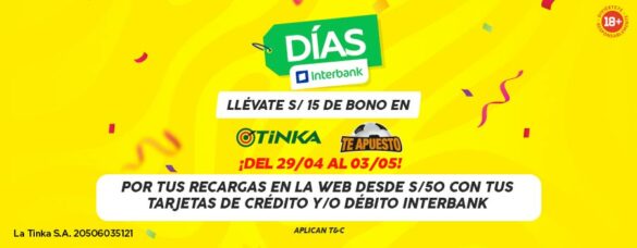 - Recarga desde S/50 en la web con tus tarjetas Interbank y llévate una jugada gratis de Tinka y S/10 en Freebets de Te Apuesto.