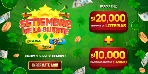 Premio total S/ 20,000 en bonos de loterías + S/10,000 en Jugadas Gratis de Casino