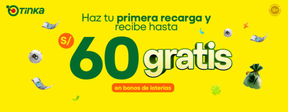 ¡Regístrate en La Tinka! Haz tu primera recarga desde S/15 y te damos hasta S/60 en bonos para loterías. Multiplica tus chances de hacer realidad tus sueños millonarios.